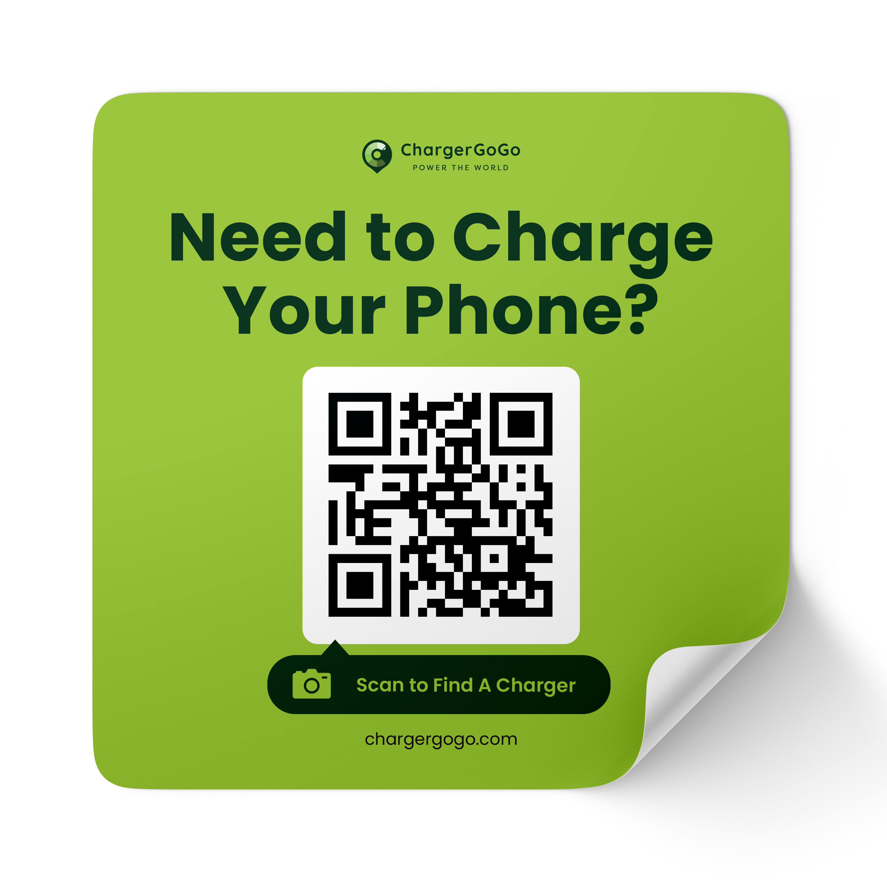 Effortlessly guide your customers to charging stations with ChargerGoGo Scan to Find a Charging Station Window Decal
